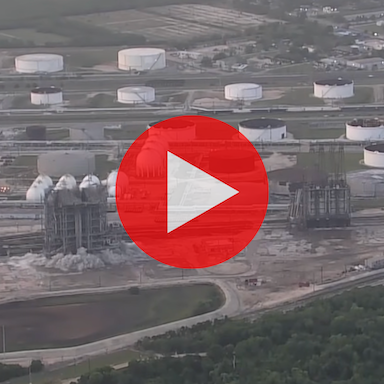 A Houston refinery demolished two inactive coker units last weekend.